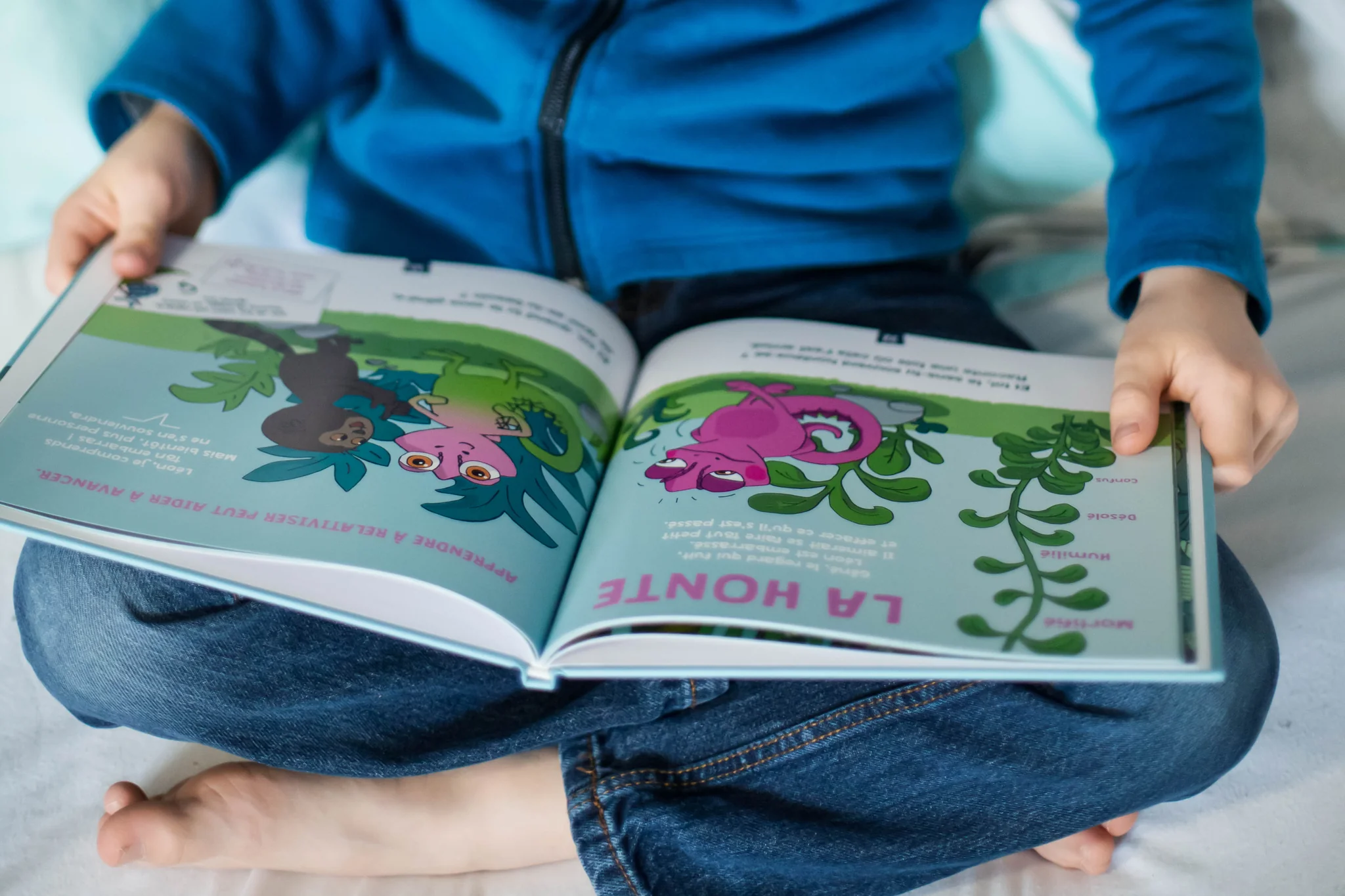 À mi-chemin entre le livre et le jeu, Léon et ses émotions invite les enfants à partir sur les traces d’un caméléon explorateur.